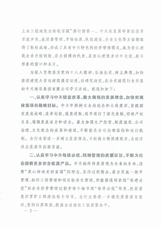 《浙江省住房和城乡建设厅关于在全省建筑行业开展向PG国际建设集团有限公司学习活动的通知》